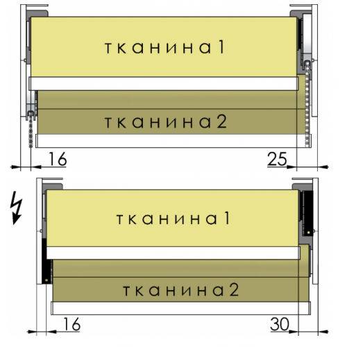 Додаткові опції: верхня планка з кліпсою, обгортання планки тканиною, нижня планка MEGA, фіксатор ланцюжка безпечний, ланцюжок металевий, автоматизація.