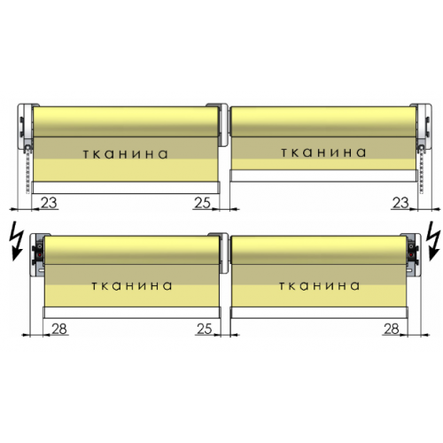 Додаткові опції: верхня планка з кліпсою, обгортання планки тканиною, нижня планка MEGA, фіксатор ланцюжка безпечний, ланцюжок металевий, автоматизація.